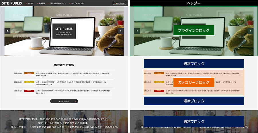 「SITE PUBLIS Connect」はブロック型のCMSです。